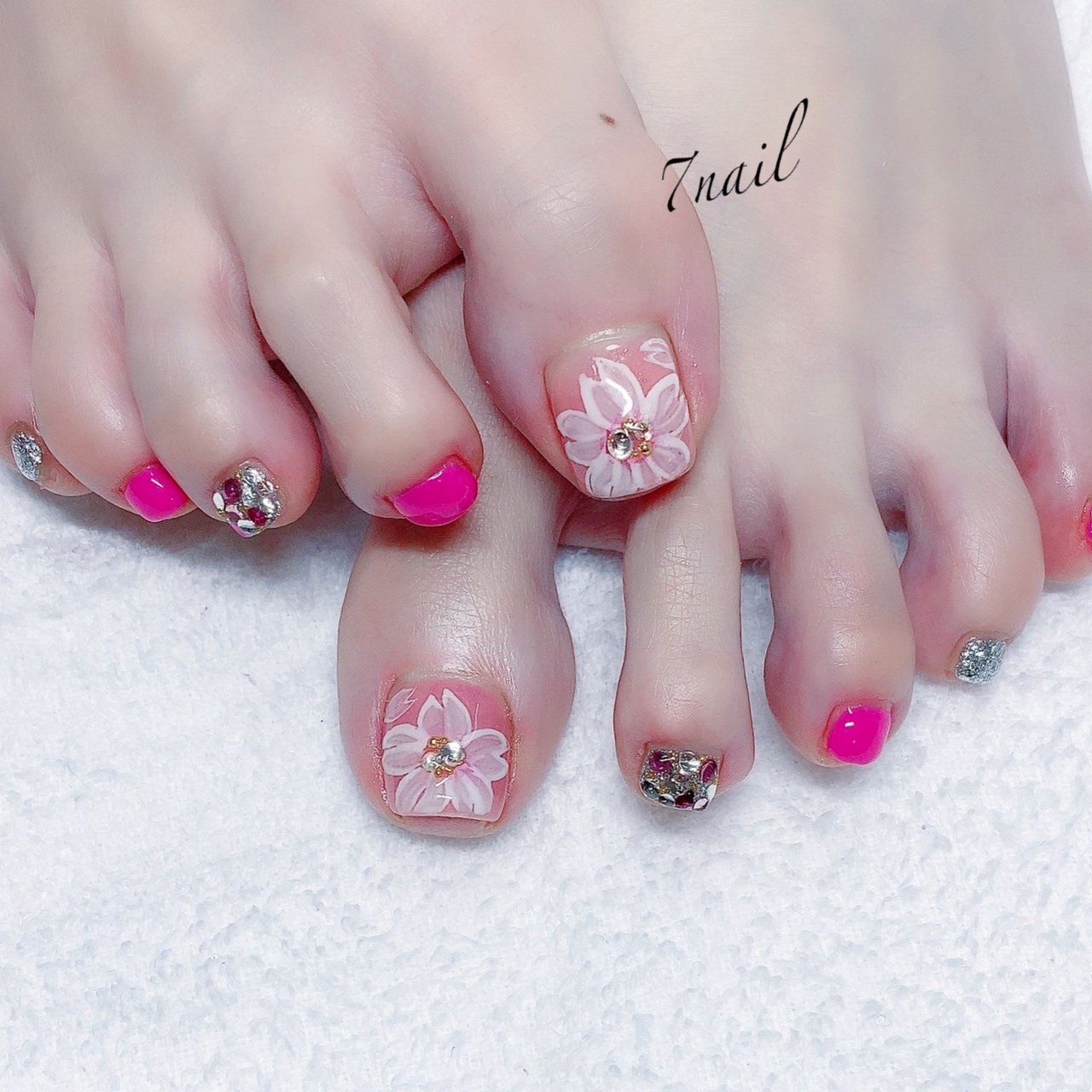 エキゾチック夏カラーフット Plusg プラスジー のネイルデザイン ネイル まつげサロンを予約するなら楽天ビューティ